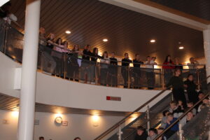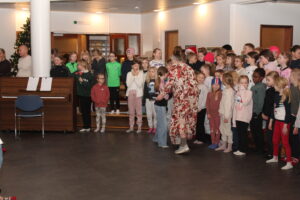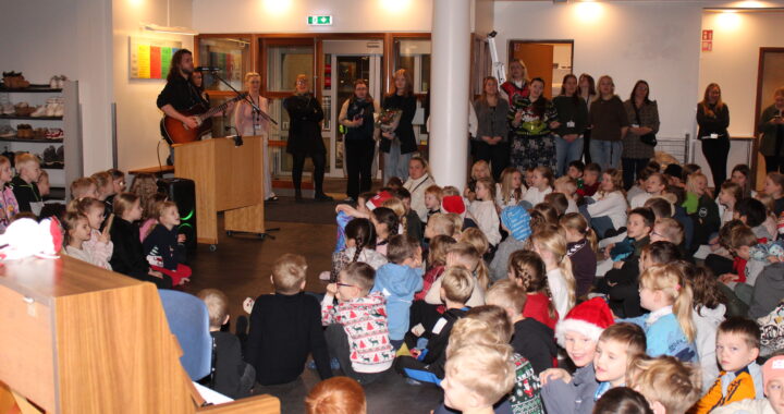 Í dag fimmtudag var svo stóra Jólasamstundin okkar. Þar gerðum við okkur glaðan dag öll saman í íþróttahúsinu. Nemendur 4.bekkjar fluttu að venju helgileikinn, nemendur á miðstigi sungu einsöng, fjöldasöngur og margt fleira. Óhætt er að segja að nemendur hafi skemmt sér konunglega og ekki síður kennarar. Enda er þetta einn af hápunktum haustannarinnar sem senn fer að ljúka.